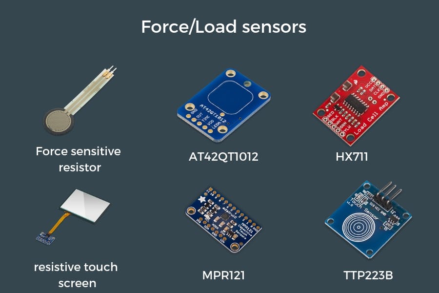 Force and touch sensors convert physical force into electrical signals. Like the other sensors we’ve mentioned, these come in several different varieties, each suited to a slightly different application. Force-sensitive sensors are found in a many devices such as mobile phones, digital scales and also in your car, as part of the airbag triggering system.