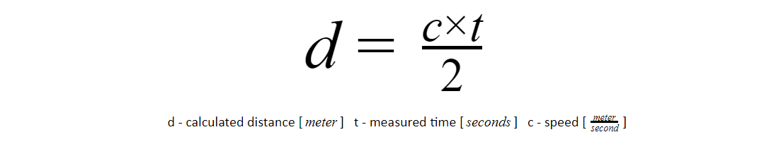 These sensors use the Time of Flight (ToF) principle, and calculate distance using the following equation: