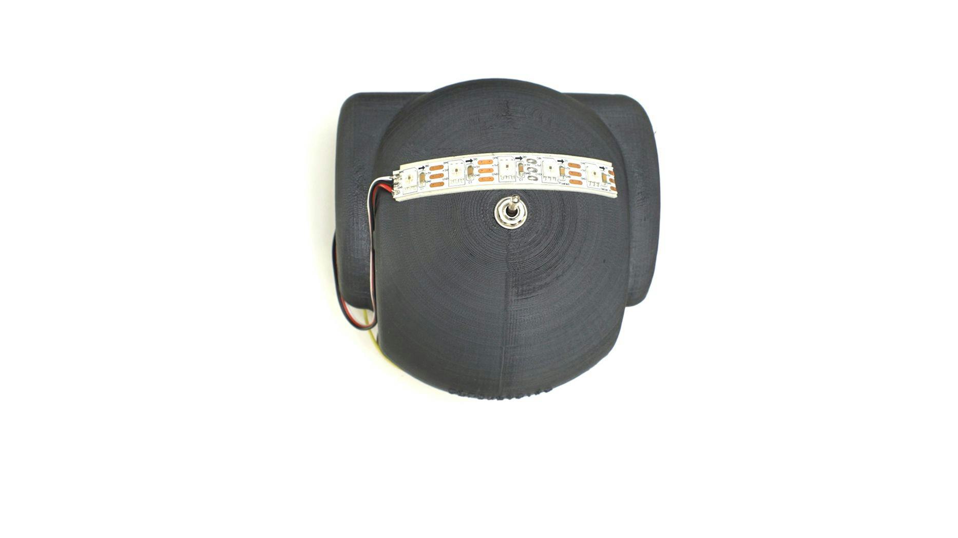 We also decided to make a 3d printed plastic hood for the line follower, for which we used a Flash Forge Creator pro, 0.3 res. On top of the hood, we placed 5 addressable LEDs with which we’ll make the light painting.