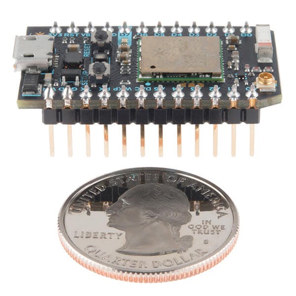 The board comes with a total of 11 digital I/Os that support interrupts, PWM, and I2CPWM, and I2C. An additional analog input, reset, and power pins bring the total up to 16 pins. The board slots neatly onto the end of your breadboard much like the ESP32.