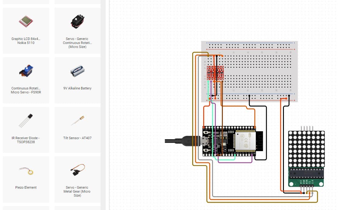 For example, if you’d like to wire up a 64-pixel dot-matrix display, you can simply drag it into position. As you can see, all the wiring and logic conversion is automatically taken care of for you.