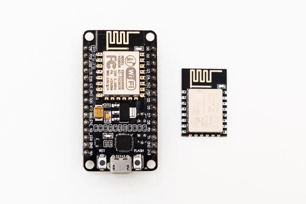 There have been many different ESP modules over the years, each with their own advantages and drawbacks. There have been just two types of NodeMCU boards, however: versions 0.9 and 1.0. The 0.9 version is blue and comes loaded with the ESP-12 chip, while the 1.0 is black, and comes with the ESP-12E (which stands for ‘enhanced’). There are several key differences between the two chips, the most notable being that the later version comes with 22 pins and the earlier one comes with just 16.