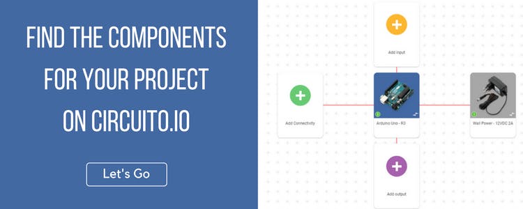 Once the circuit is complete, you can move on to the code. As with all the projects we publish here, you'll have to modify the original code you got from circuito.io, if you want to get the same functionality that we did. The code we used can be downloaded here, and we're more than happy to hear updates and modifications if you made any.