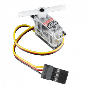 To make the flapping motion for the wings we paired the Arduino board with a small servo motor, weighing about 20 grams. The object attached to the servo will have a 180-degree rotational capability with a maximum speed of 0.18 sec per 60 degrees.
