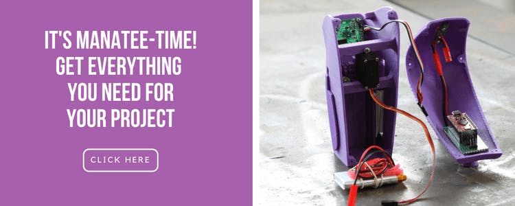 This wing-flapping manatee, which we are aware is a bit of an odd mixture, is lots of fun to make and proved very useful for us in our workshop. We programmed the Manatee to flap its wings when motion is detected so it serves as a sort of "greeter" in the doorway of our workshop. You can also use this for other applications and add more functions to it, which we'll discuss a bit later.